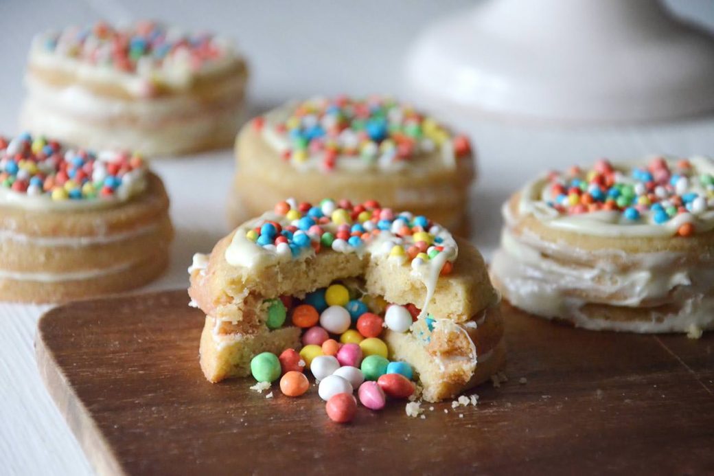 Inserite all’interno i confettini colorati e richiudete con l’ultimo biscotto. Decorate poi a piacimento con cioccolato e confettini!